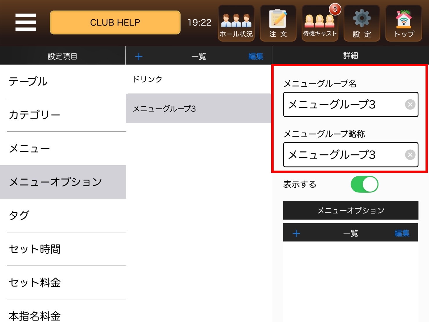 4.右側に詳細が表示されるので、メニューグループ名を変更します。