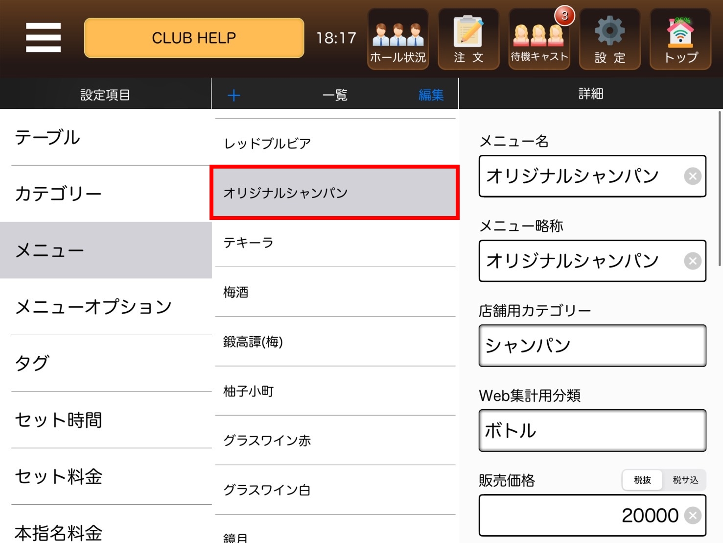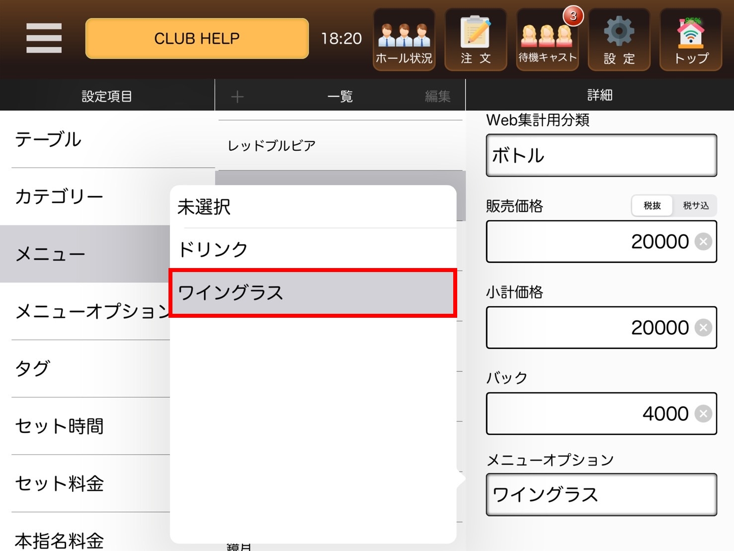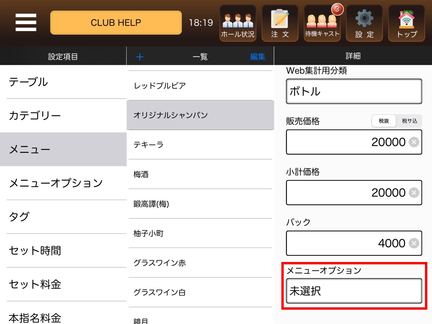 メニューオプションの設定方法 カテゴリ 伝票/ 注文/ 設定 メニューオプションの設定方法をご説明いたします。 ※作成方法はこちらをご参照ください。 1.TRUSTアプリにログインし、右上のアイコンから「設定」を選択します。 2.設定項目の3番目にある「メニュー」を選択します。 3.オプションを設定したいメニューを選択します。 4.右側の詳細より、「メニューオプション」を選択します。 5.設定したいメニューグループを選択します。 ※設定すると、注文画面にて表示されます。 Tagged:メニュー伝票注文設定