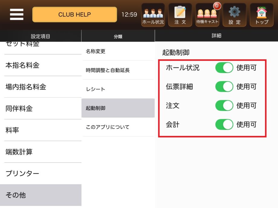2. 使用する項目を「使用可」にします。