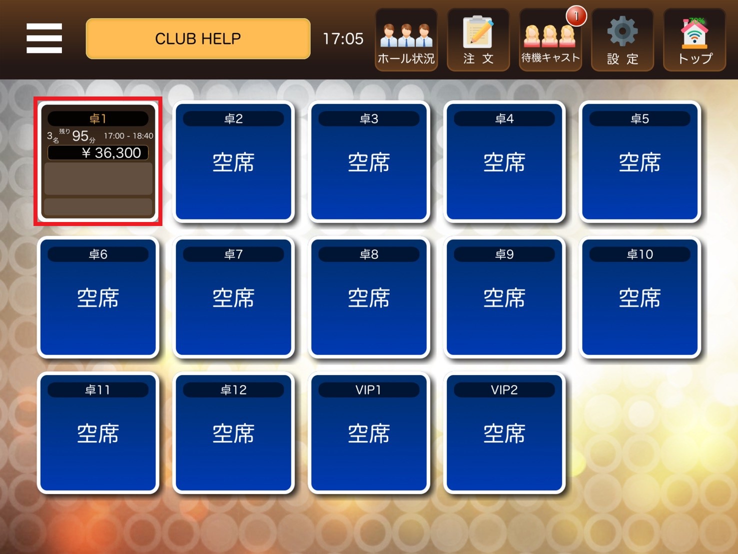 1. ホール状況から該当の卓を開いた際は、ボタンが4セット目にあります。