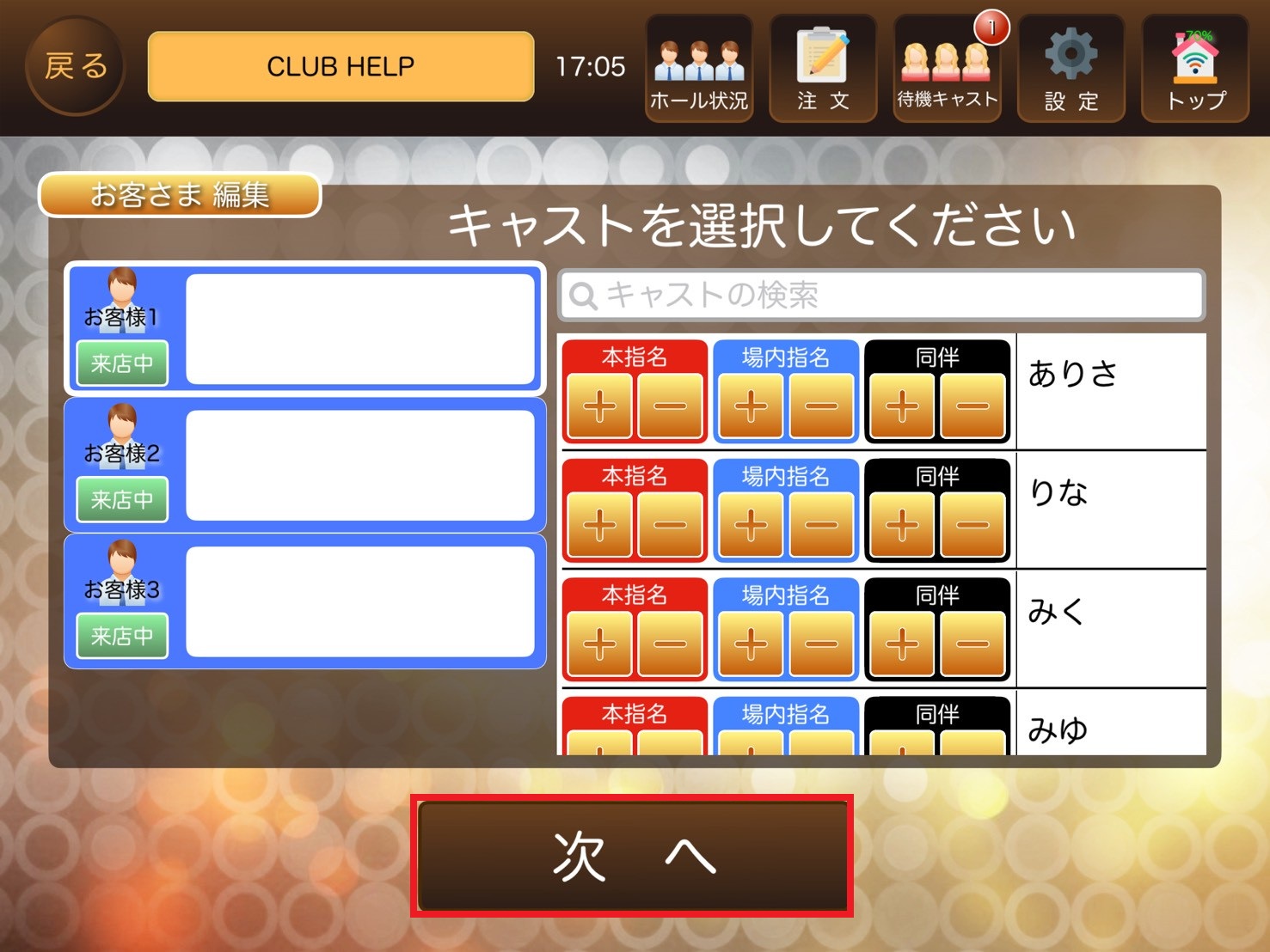 4. 指名・同伴に変更がなければ「次へ」をタップします。