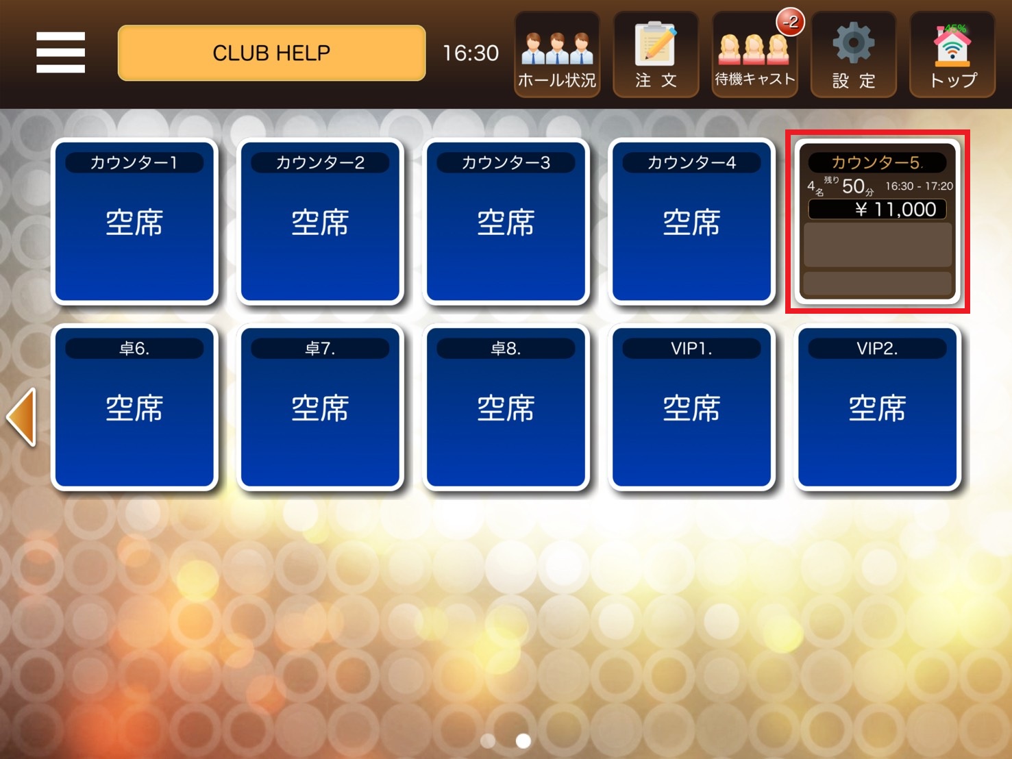 1. ホール状況画面から、会計したい卓を押します。