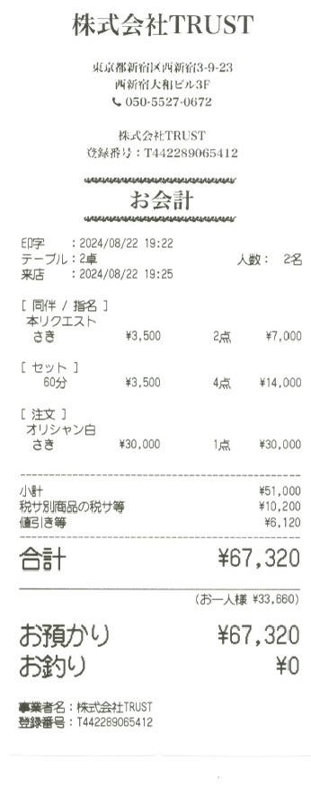 2. 分類「レシート」を押します。