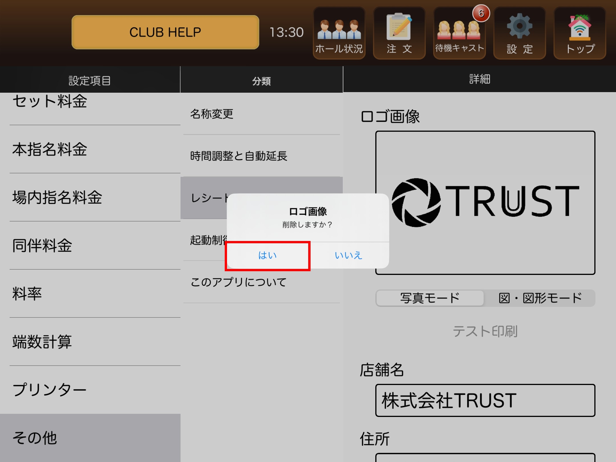 5. 「削除しますか?」の文言が表示されるため、「はい」を押します。