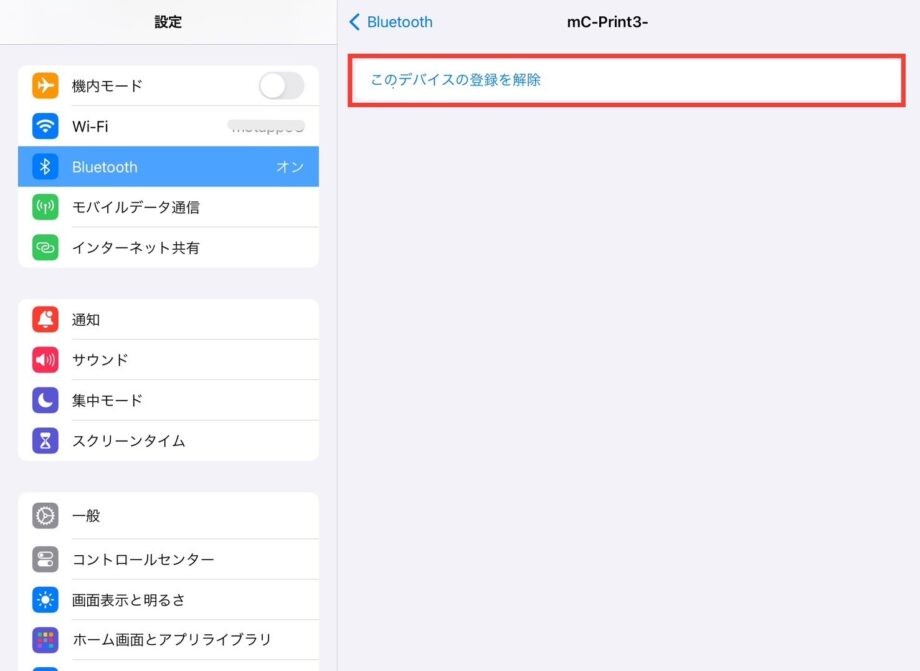 Bluetooth接続の解除と、プリンターの初期化が完了したら、再度プリンターとiPadを接続します。