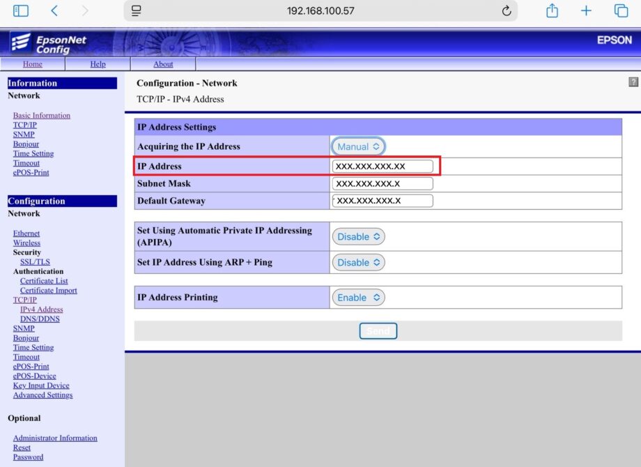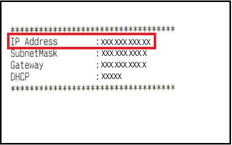 手順2で印刷されたステータスシートの「IP Adress」を確認してください。