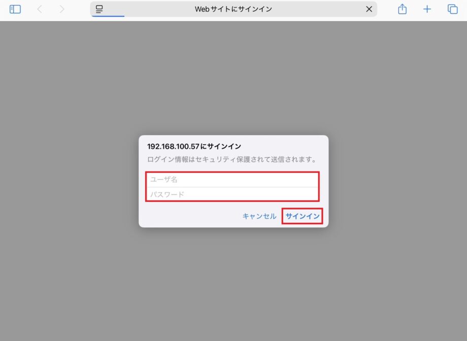 3. iPadでsafariを開き、手順2で印刷されたステータスシートのIP Addressを検索します。