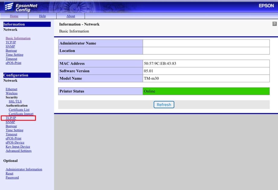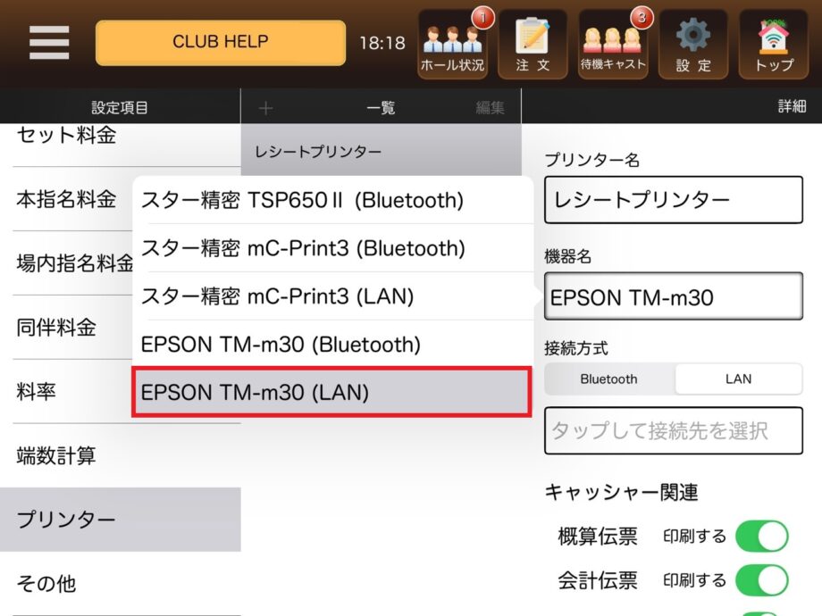 15. 「EPSON TM-m30(LAN)」をタップします。