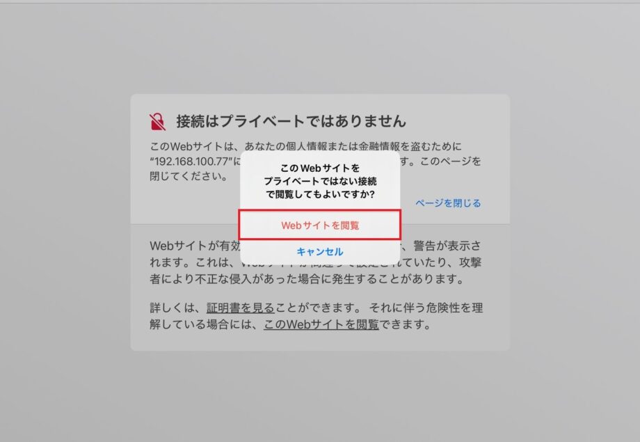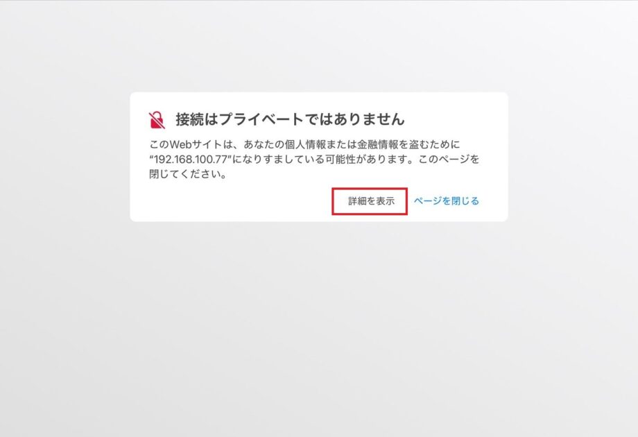 4. 「接続はプライベートではありません」というメッセージが表示されたら、「詳細を表示」をタップします。