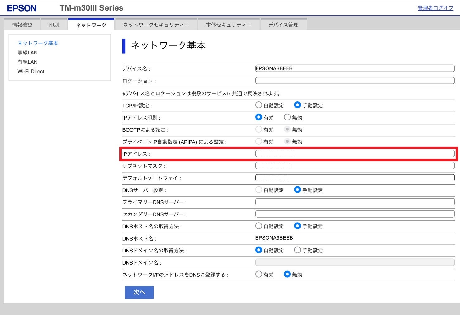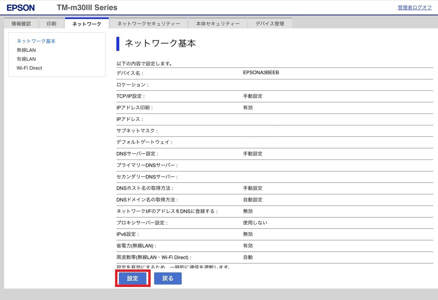 ⑤「EPSON TM-m30(LAN)」をタップします。