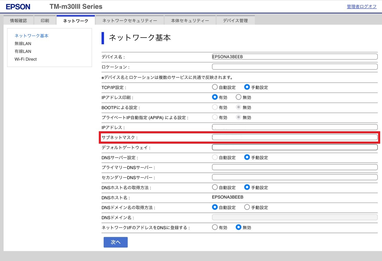 手順2で印刷したステータスシートの「SubnetMask」を確認してください。